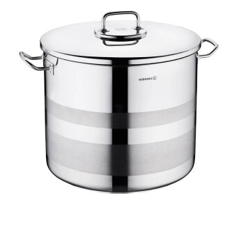 The Korkmaz Astra2 Extra Deep Pot is designed for efficiency and convenience in the kitchen. With a generous capacity of 42.5 liters and dimensions of 40x34 cm, it is perfect for large-scale cooking. Its flat lid design allows for easy stacking and space-saving in dishwashers. The innovative Solar Base system ensures maximum heat transfer on all types of stoves, including induction, providing significant time and energy savings.