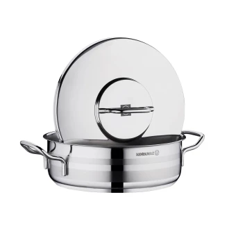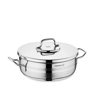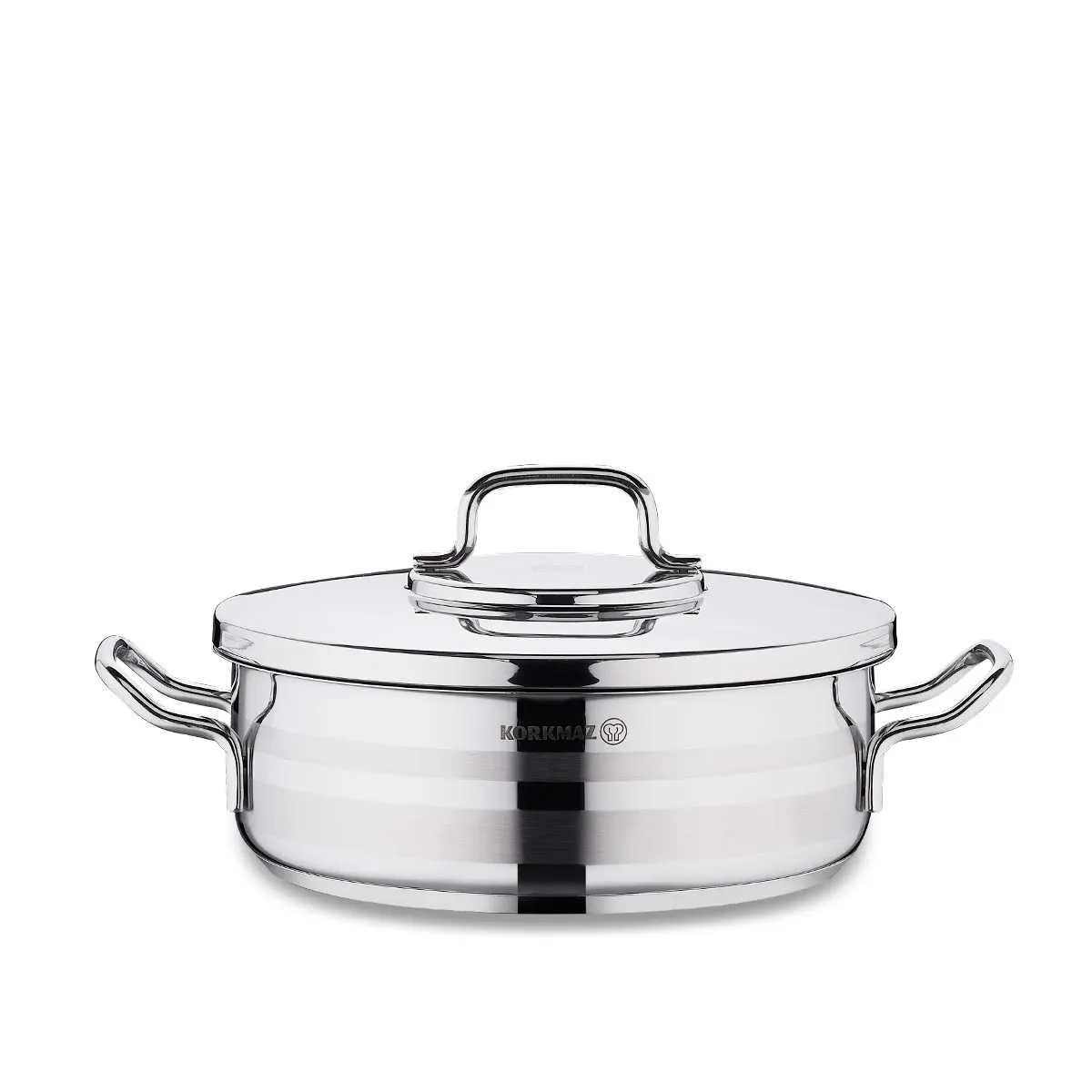 The Korkmaz Astra2 Short Casserole is designed for efficiency and convenience in the kitchen. With a capacity of 4.5 liters and dimensions of 26x8.5 cm, it features a Solar Base system for optimal heat transfer on all stove types, including induction. Its flat lid allows for easy stacking and space-saving storage, making it a practical choice for any culinary setting.
