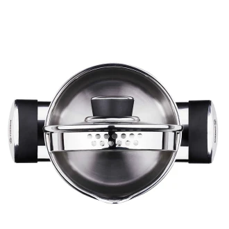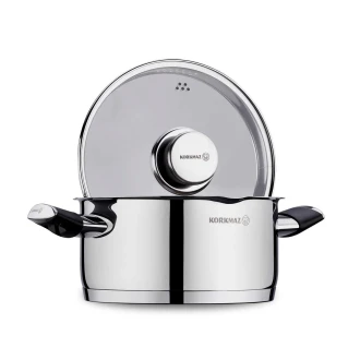 The Korkmaz Pera Pot is crafted from high-quality stainless steel, ensuring durability and a healthy cooking experience. Its innovative design features heat-resistant handles and a homogeneous heat-emitting base, enhancing cooking efficiency. The specially designed strainer lid allows for easy cooking and straining in one pot, making it a versatile addition to any kitchen.