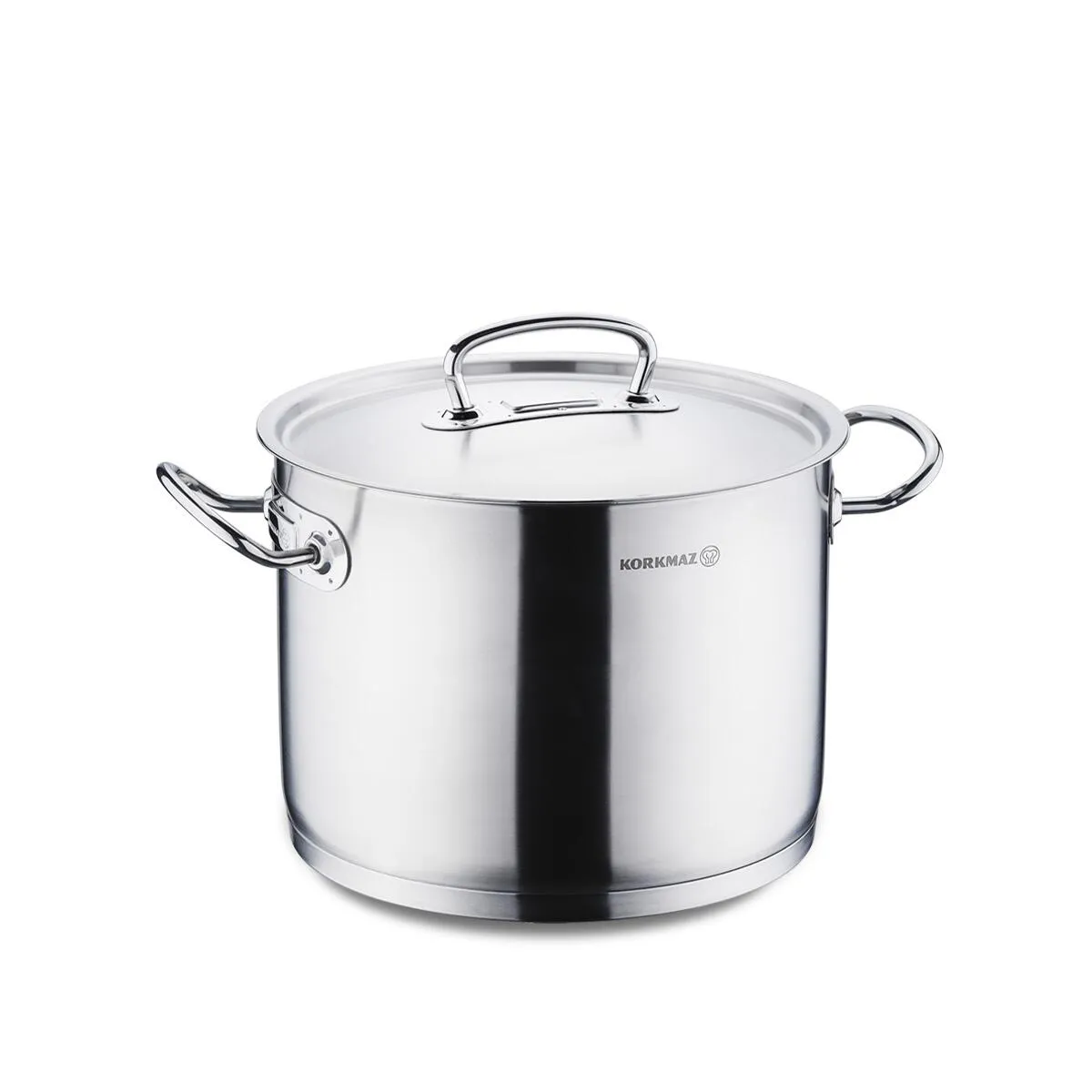 The Korkmaz Proline Extra Deep Pot is crafted from high-quality 18/10 Cr-Ni stainless steel, featuring a super capsule base for optimal heat conduction. With ergonomic handles and a steam-trapping cover, it ensures safe and efficient cooking. Ideal for both professional chefs and home cooks, this pot is designed for durability and ease of use, making it a perfect addition to any kitchen.