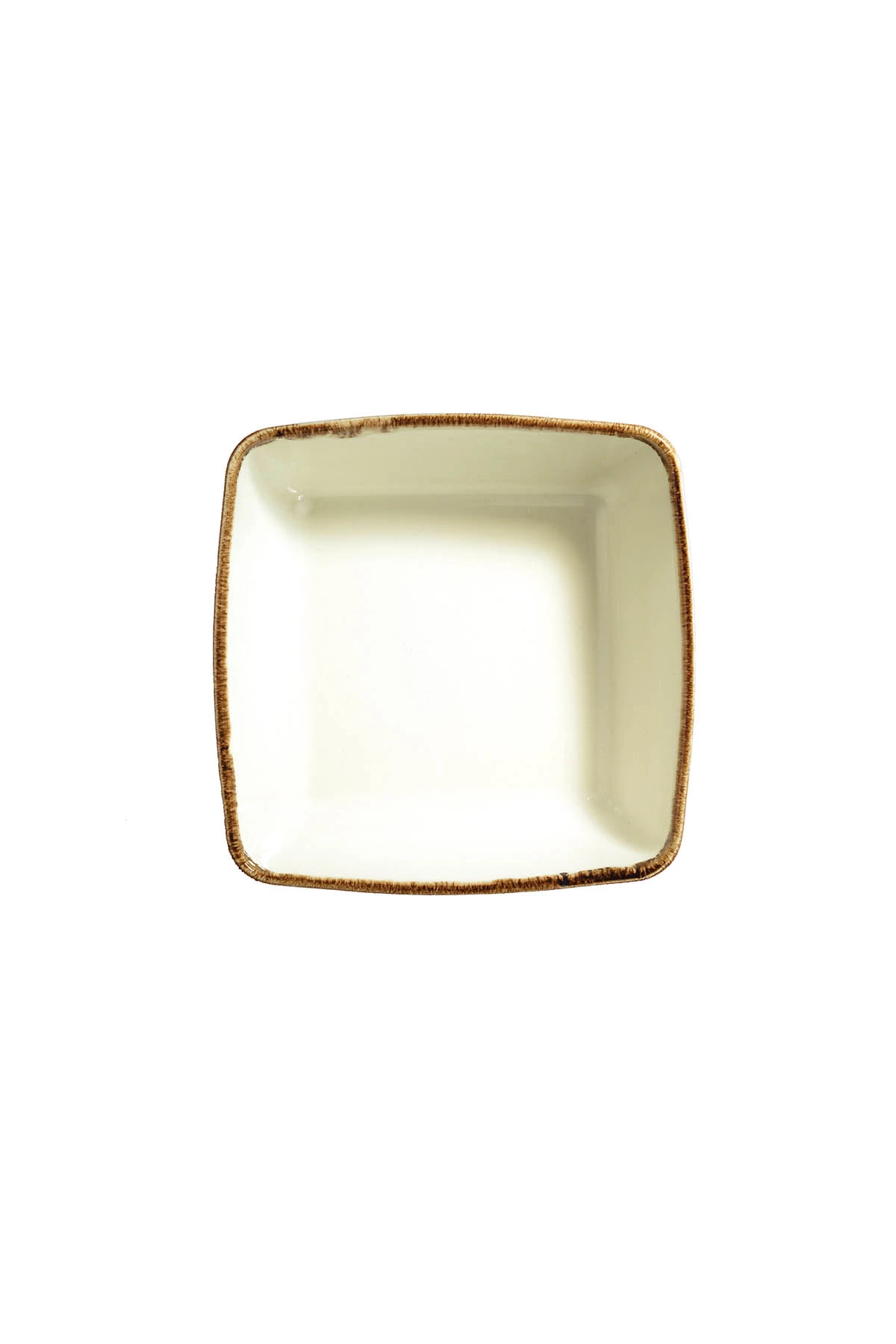 The Kütahya Porcelain Bone Tan 13cm Bowl in cream features a beautifully decorated netted design, perfect for serving a variety of dishes. Its elegant rectangular shape adds a touch of sophistication to any dining setting, making it an ideal choice for both casual and formal occasions.
