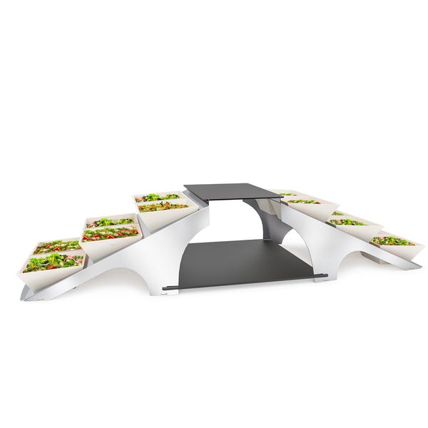 The Ladder SEA 3 Layer 6 Slot Set of 2 Square Bowls features a sleek satin finish, perfect for enhancing the presentation of your culinary creations. Designed for both functionality and style, this set is ideal for restaurants and catering services looking to elevate their serving options. The unique design allows for efficient organization and display of various dishes.