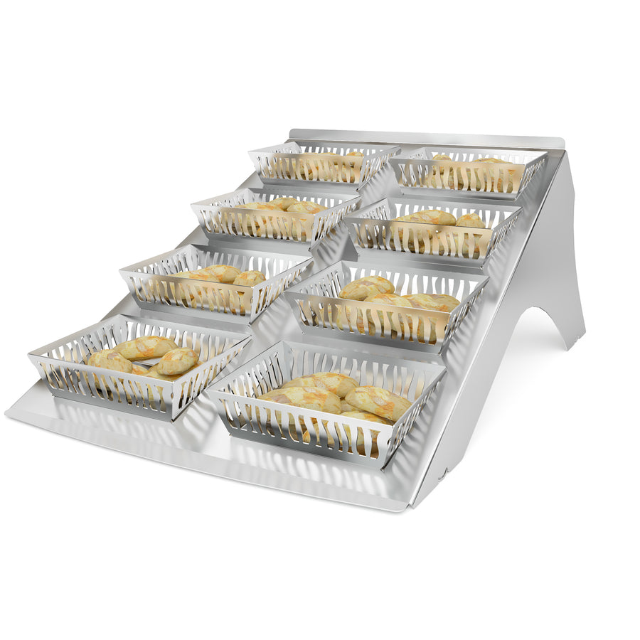 The Ladder Sea Bread Stand features a stylish and organized design, perfect for showcasing bread at buffets. With three layers and eight baskets, it allows for efficient presentation and easy access. Ideal for hotels, restaurants, and cafes looking to enhance their dining experience.