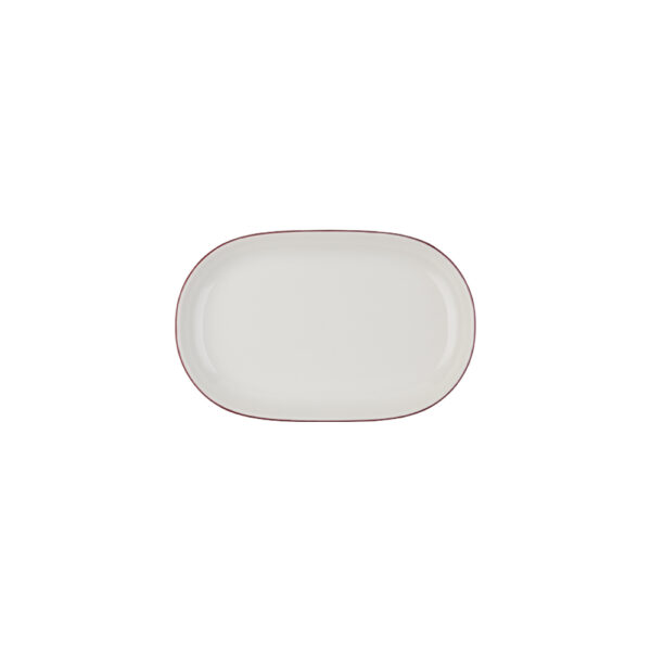 The Modest Maroon Magnus Oval Boat is a beautifully crafted porcelain piece designed for elegance and durability. With a lifetime edge cracking resistance, this 23 cm boat is perfect for serving a variety of dishes in a stylish manner, making it an ideal choice for restaurants and cafes.