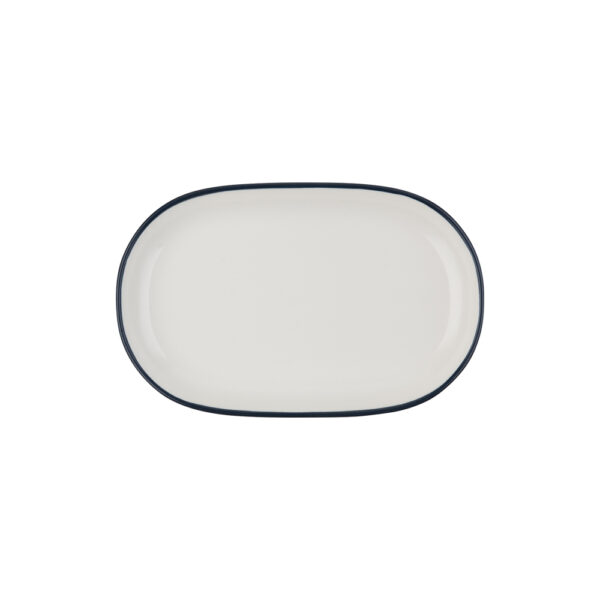 The Modest Navy 28 cm Oval Boat from Bonna is a beautifully crafted porcelain dish designed for both elegance and durability. With its lifetime edge cracking resistance, this piece is perfect for high-traffic restaurant environments, ensuring a long-lasting addition to your tableware collection. Ideal for serving a variety of dishes, it combines functionality with a modern aesthetic.