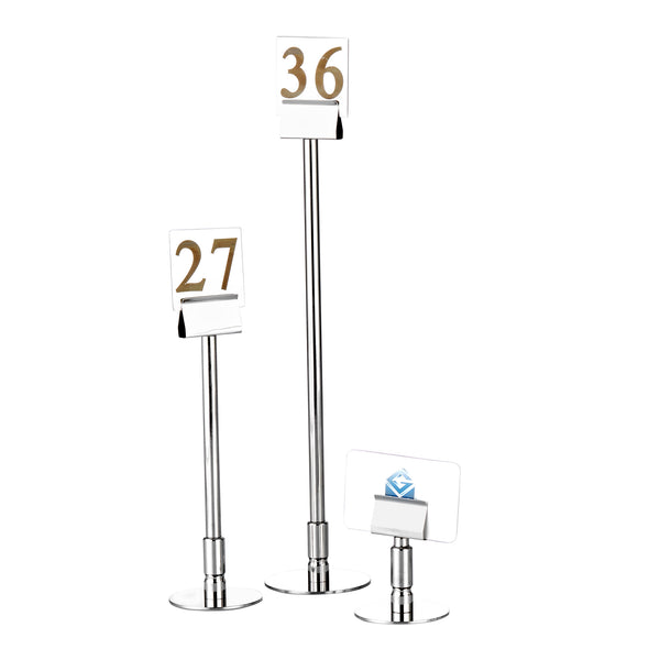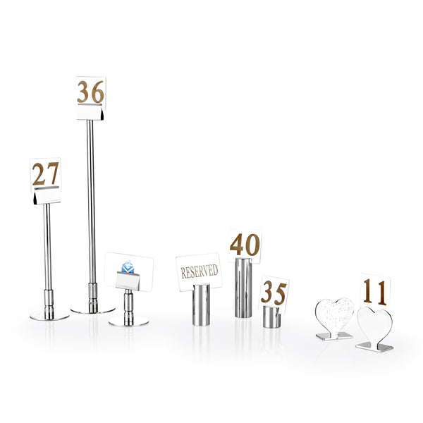 The Name Plate Table Number Stand is an elegant solution for table numbering in restaurants and cafes. With its sturdy barred structure and height of 32 cm, it ensures visibility and style. Available in various colors including gold, copper, and rainbow, this stand features a durable Titanium PVD coating for long-lasting use.