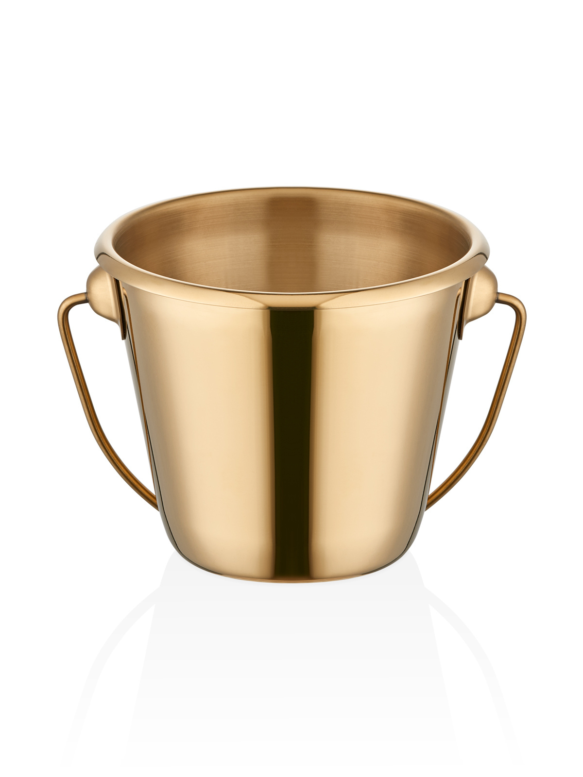 Enhance your presentation with the Narin Mini Presentation Bucket in Gold Titanium. Crafted from durable 18/10 stainless steel and finished with a luxurious gold titanium PVD coating, this mini bucket is ideal for serving snacks, holding cutlery, or as an elegant decorative piece. Designed for versatility, it is made to order and is recommended to be hand washed for longevity.