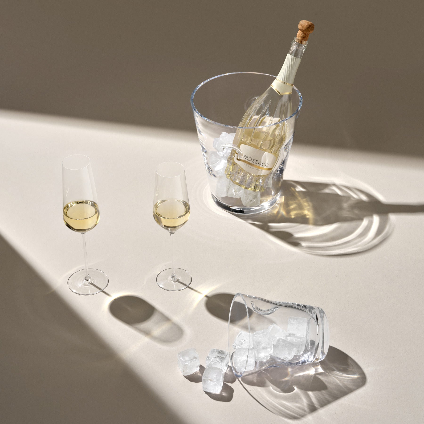 The Nude Glacier Crystal Ice Bucket is a stunning piece that features faceted, textured crystal, beautifully reflecting light and mimicking the look of carved ice. With a generous capacity of 1100 ml, it is perfect for serving ice at any bar or event, adding a touch of elegance to your beverage service.