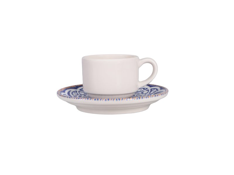 The Oriental Stackable Coffee Cup & Coupe Saucer is designed for both functionality and elegance. With a capacity of 85 cc, this ceramic set is perfect for serving coffee or tea in style. Its stackable design saves space, making it ideal for busy cafes and restaurants. The classic white finish complements any table setting.