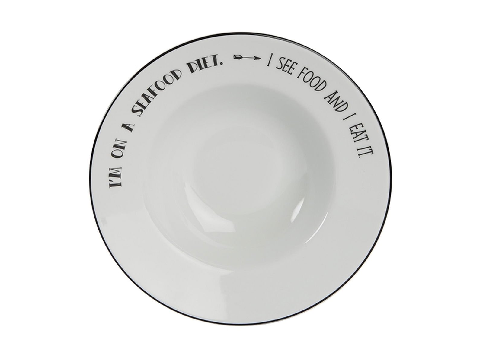 The Porland Be Happy Pasta Plate, measuring 25 cm in diameter, features a delightful design with black patterns and uplifting messages. Crafted from high-quality porcelain, this plate is perfect for serving pasta and adds a touch of joy to any dining experience. Its versatile design makes it suitable for everyday use or as a charming gift for loved ones.