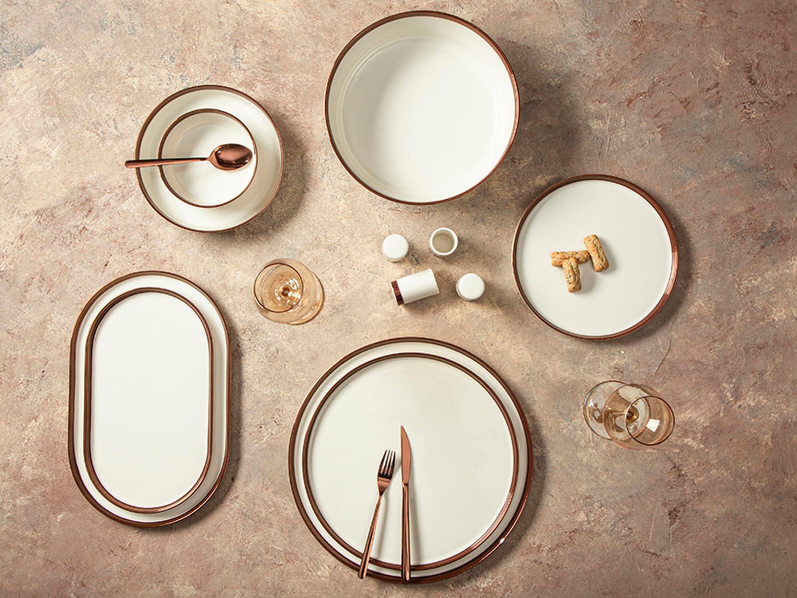 The Porland Chopin Copper 60 Piece Dinner Set elegantly combines simplicity with sophistication, featuring a timeless design that enhances any dining experience. This set is perfect for serving up to 12 people, making it an ideal choice for gatherings and special occasions. The copper accents add a touch of luxury, ensuring your table setting reflects elegance and style.