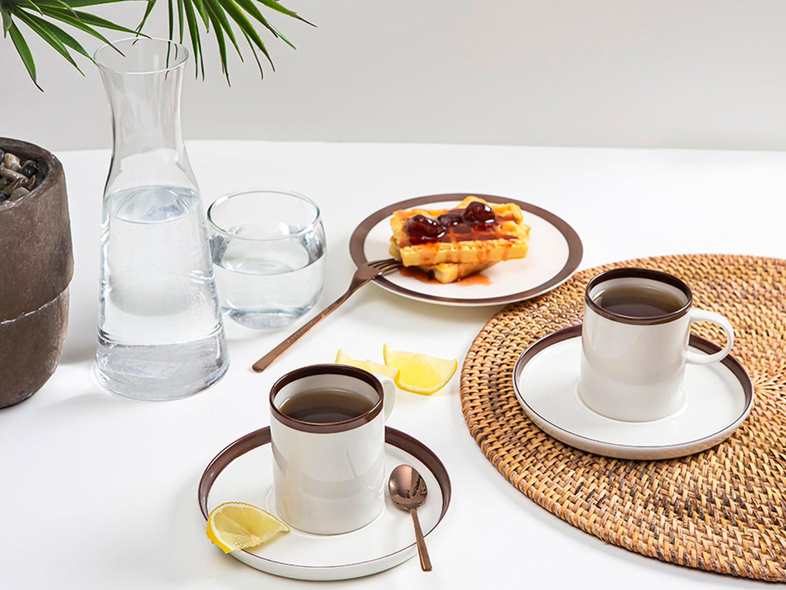 The Porland Chopin Copper Tea Cup Set elegantly combines simplicity with sophistication, making it a perfect addition to any table setting. Designed to showcase the timeless beauty of copper accents, this set is ideal for serving tea to two people, enhancing both casual and formal occasions.