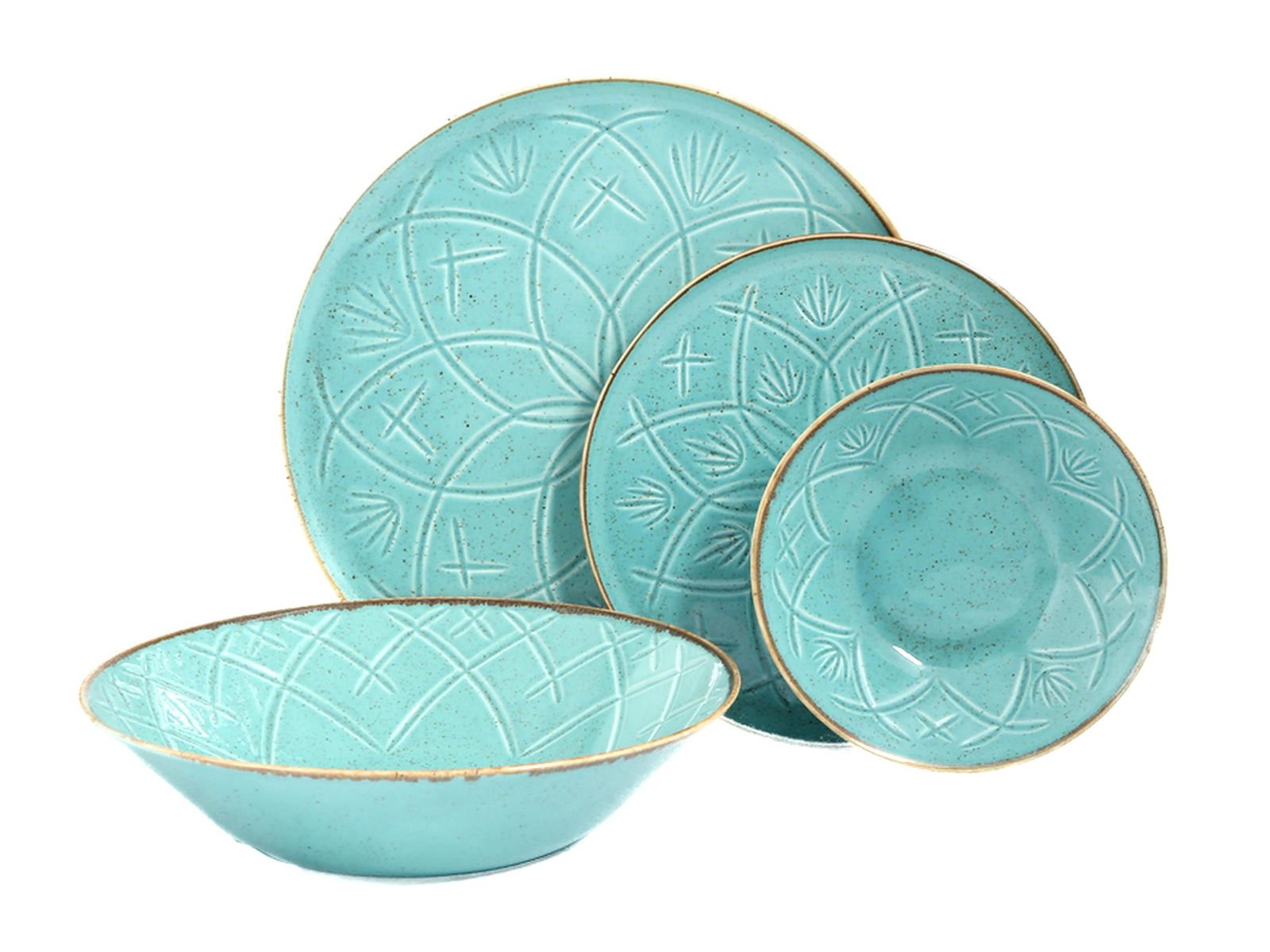 The Porland Christina Seasons Turquoise 4 Piece Single Dining Set combines modern and retro elegance, showcasing a unique design that harmonizes traditional and contemporary styles. Crafted from Alumilite, this collection features high mechanical strength and a thin profile, making it suitable for both professional and home settings. Each piece is adorned with distinct color options and relief patterns, complemented by decorative feet that enhance its innovative appeal.