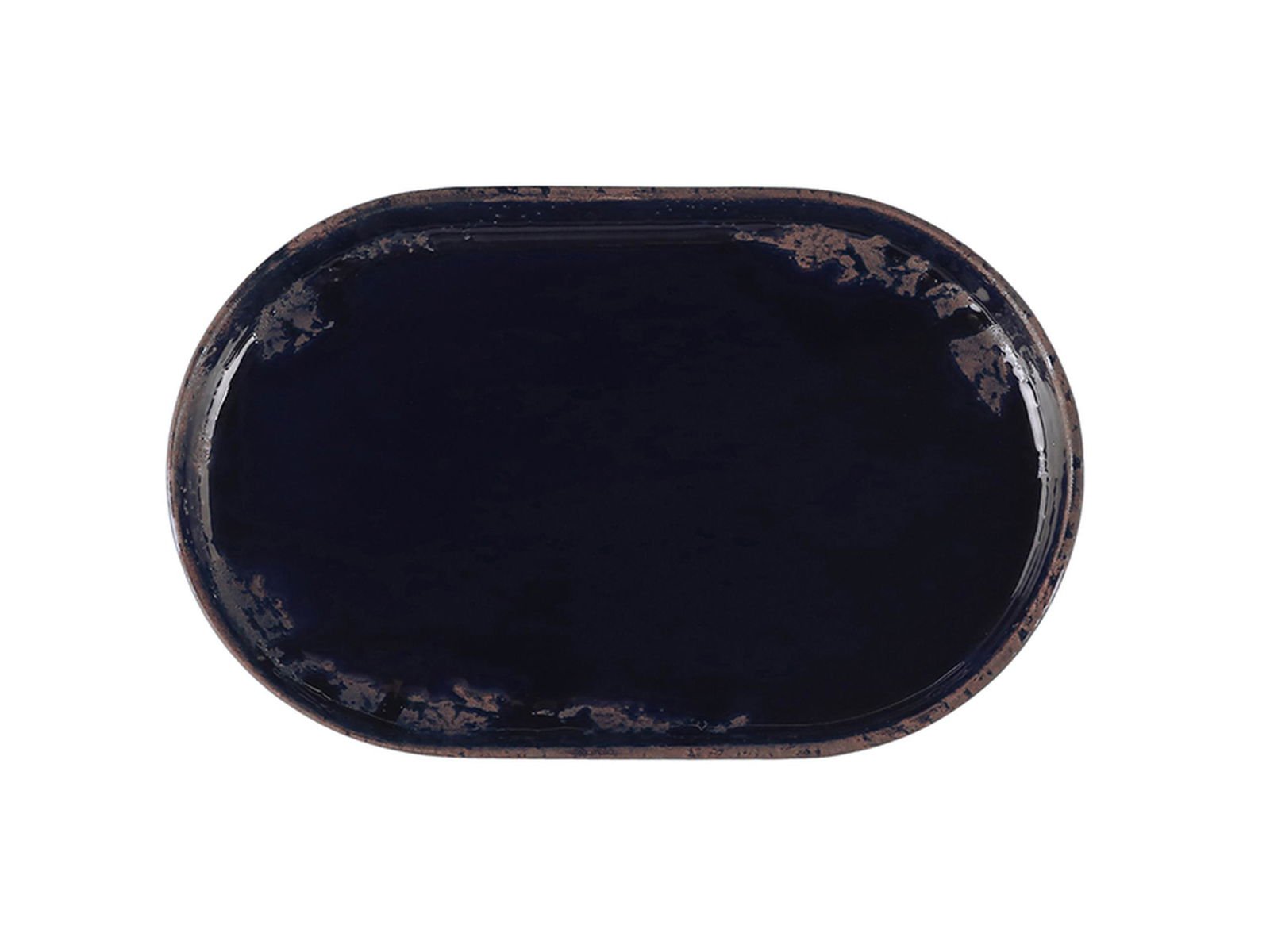 The Porland Ethos Root Rusty Boat Plate, measuring 32 cm in diameter, is crafted from Porland's unique Alumilite material. This plate features a stunning design inspired by nature, showcasing earthy tones of rusty brown against a navy blue background. The Ethos collection combines elegance with durability, making it an ideal choice for enhancing your dining experience.