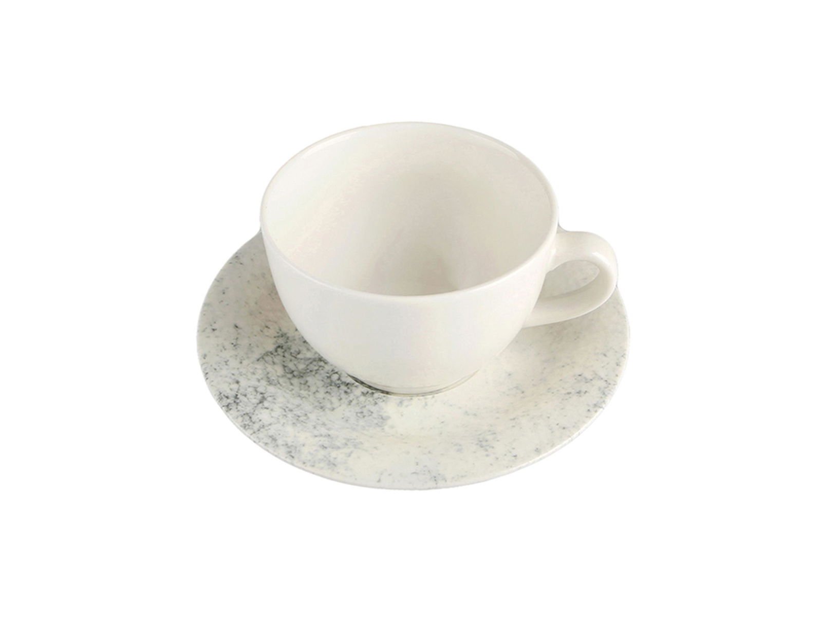 The Porland Ethos Smoky Saucer Teacup is part of the Ethos Collection, crafted with meticulous attention to detail using Porland's unique Alumilite material. This collection features various patterns inspired by nature, combining elegance and durability. The smoky effect and gray-white colors of the Smoky Collection add a distinctive style to any table setting, making it perfect for both casual and formal occasions.
