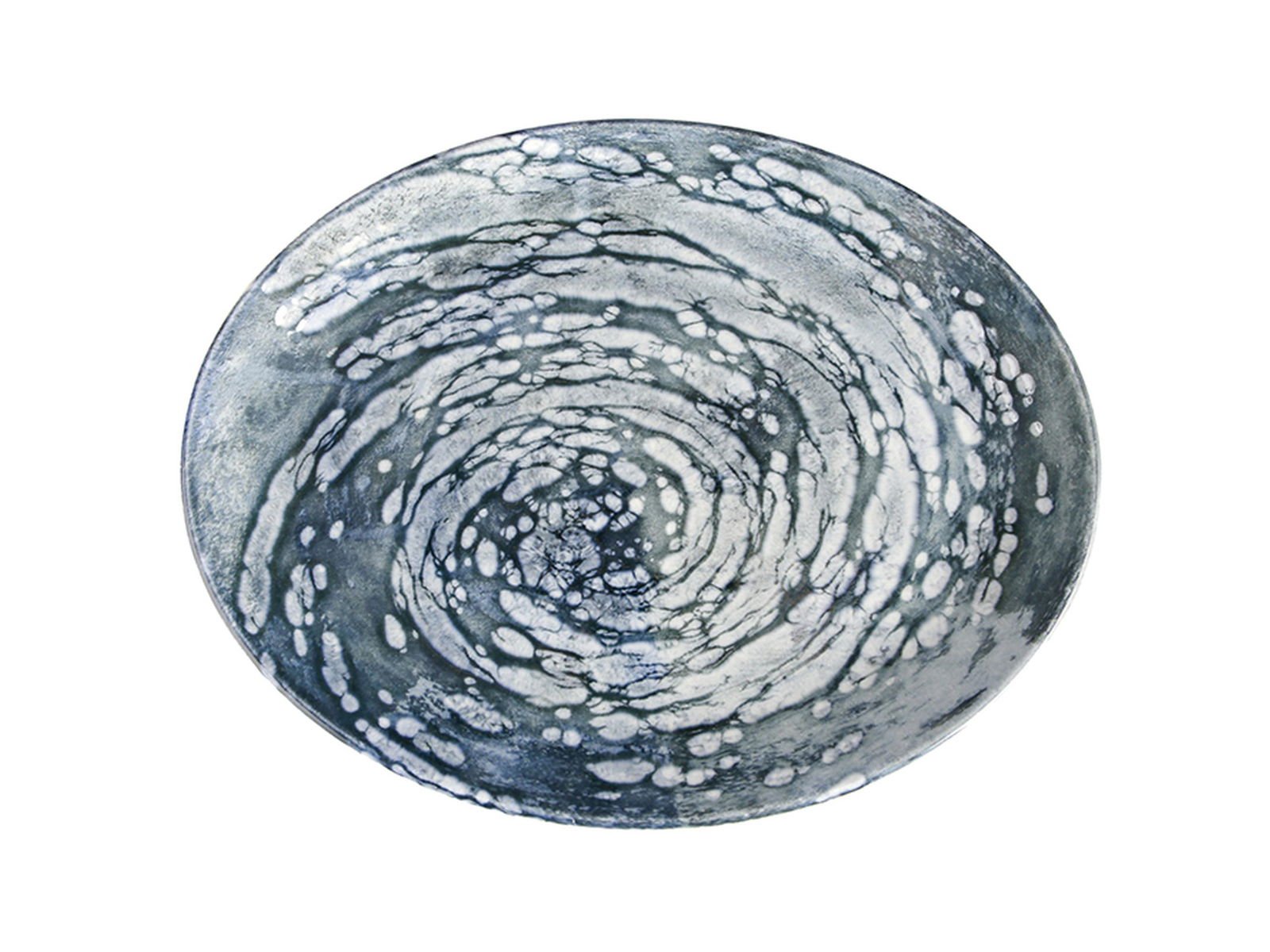 The Porland Ethos Vortex Boat Plate, part of the Ethos Collection, showcases a unique design inspired by the waves of the sea. Crafted from Porland's special Alumilite material, this plate combines elegance with durability, featuring attractive navy blue tones and hypnotic patterns that will captivate your guests. Perfect for enhancing your dining experience, this plate is both aesthetically pleasing and practical for everyday use.