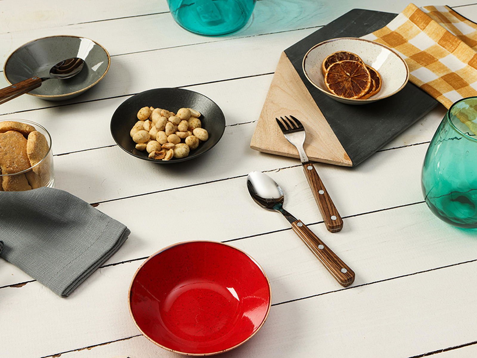 The Porland Grazia Seasons 4 Piece Bowl Set features strong colors that enhance elegant presentations. This collection reflects the beauty of imperfections found in nature, with each piece showcasing unique edge patterns crafted through special handwork. Made from Porland's durable Alumilite Porcelain, these bowls are designed for those who appreciate the traces of time's beauty on their tables.