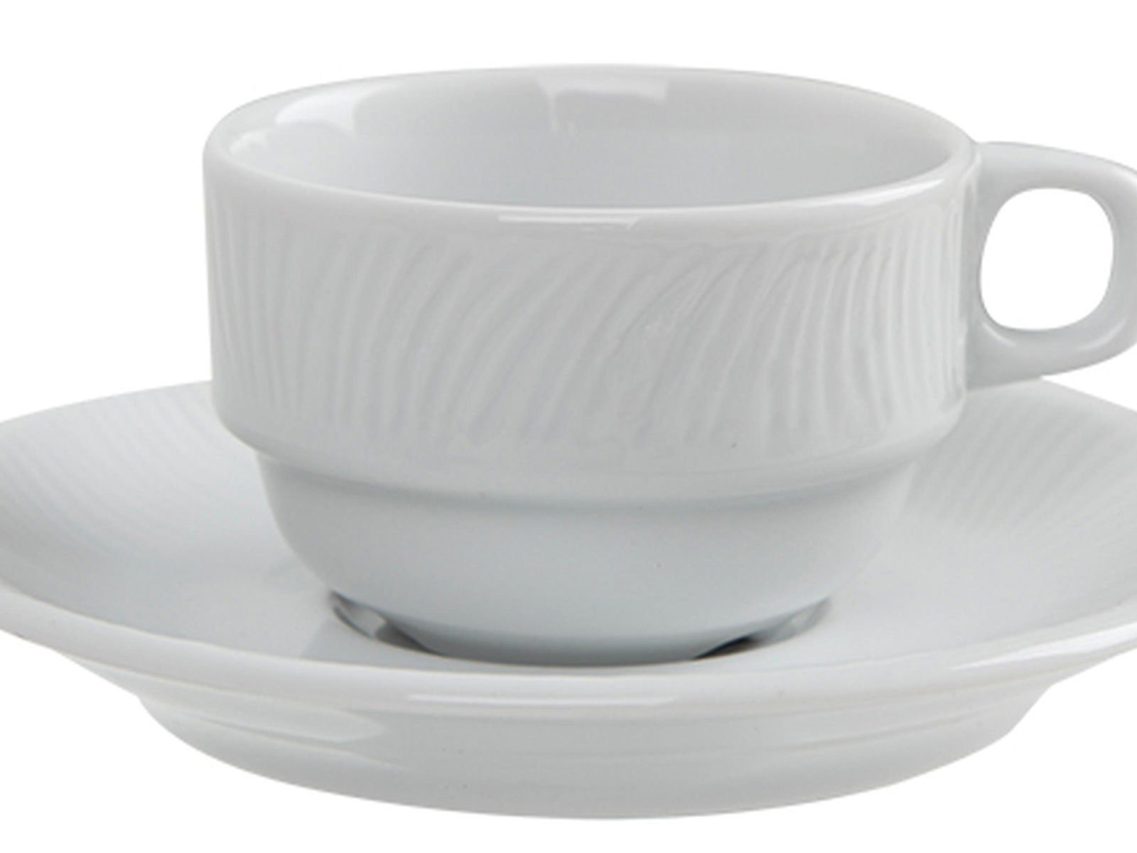 The Porland Lara White Plate Coffee Cup is a stunning addition to any table setting, featuring elegant reliefs that enhance its visual appeal. Crafted from high-quality porcelain, this coffee cup is designed to create an extraordinary effect, making it perfect for enchanting presentations. Each set includes 12 pieces, ideal for both commercial and personal use.