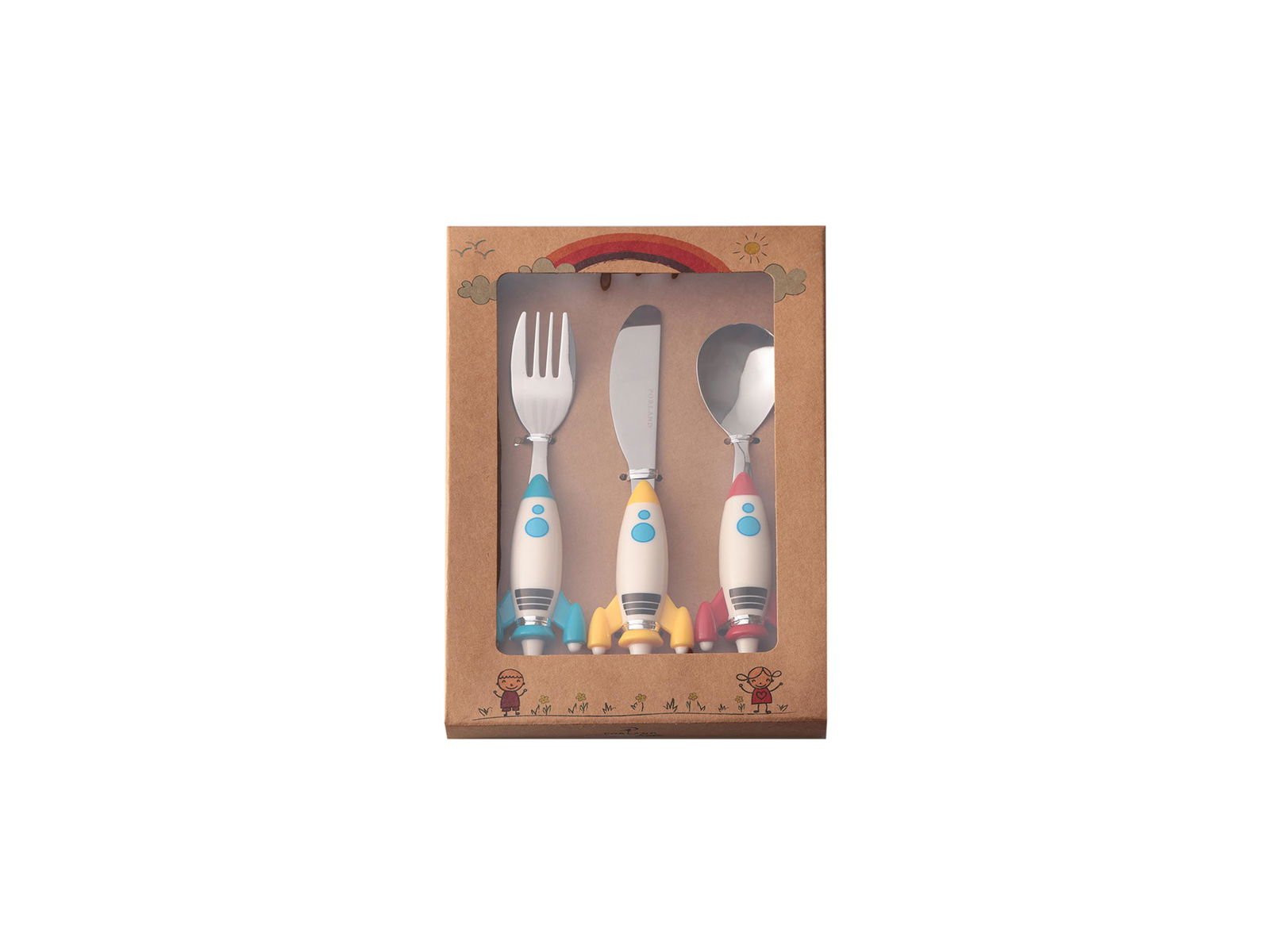The Porland Mini Rocket Children's Cutlery Set is part of the Ethos Collection, crafted with care using Porland's unique Alumilite material. This set features a nature-inspired design with elegant patterns that combine durability and aesthetic appeal. Perfect for young diners, it brings a touch of sophistication to children's dining experiences.