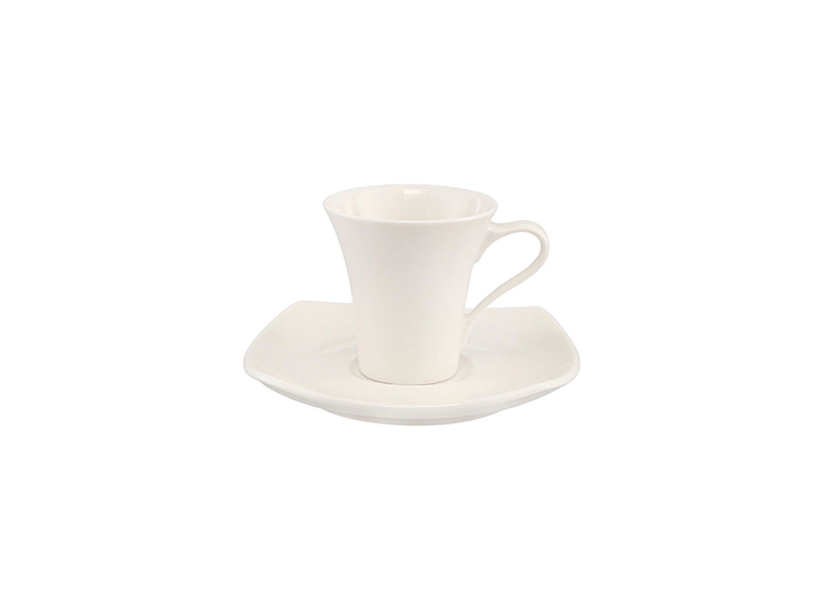 The Porland Square Alumilite Saucer Tea Cup set features soft-edged lines and a creamy white finish, embodying a modern aesthetic perfect for contemporary dining experiences. This collection is designed to create a striking impact in presentations, making it an ideal choice for catering and hospitality settings.