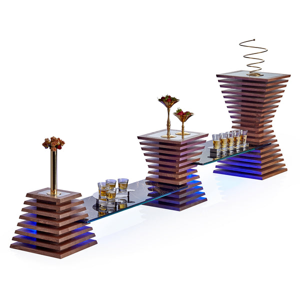 The Max Presentation Stand is designed to enhance buffet displays with its elegant wooden body and stainless steel upper tables. Available in three sizes, it allows for versatile combinations and creates an organized presentation area, ensuring guests can easily view the food offerings. Its warm wood finish seamlessly adapts to any environment, making it an ideal choice for catering and hospitality settings.
