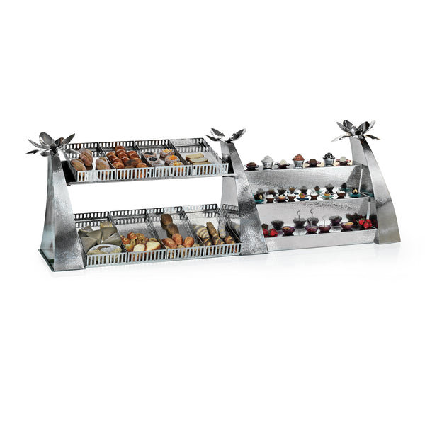 The Presentation Stand Palm Tree Ladder with Shelf is a stylish and functional display solution for restaurants and cafes. Designed to enhance the presentation of food and beverages, this stand features a unique palm tree ladder design that adds a touch of elegance to any setting. Perfect for showcasing appetizers, desserts, or drinks, it is an essential accessory for any hospitality establishment.