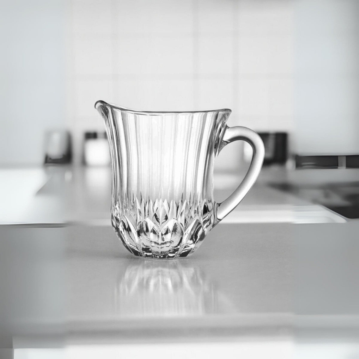 The RCR Adagio Jug, with a capacity of 1200 ml, features elegantly designed deep cuts that enhance its shine and sophistication. Crafted from Luxion® lead-free crystal glass, this pitcher combines modern aesthetics with exceptional durability, making it an ideal choice for serving a variety of beverages. Its lightweight design ensures easy handling, while being dishwasher safe for effortless cleaning. Elevate your table setting with this stylish and functional piece from RCR's renowned Adagio collection.