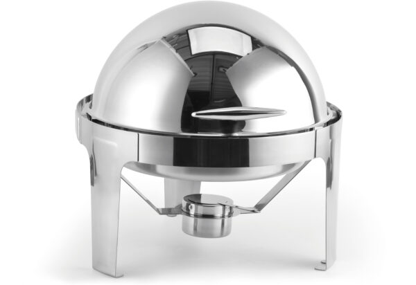 The Rolltop Round Chafing Dish from WMF is an elegant solution for buffet service, featuring a 6-liter capacity and a sleek stainless steel design. Its roll-top lid allows for easy access to food while keeping it warm and fresh, making it ideal for catering events and restaurant buffets. The durable construction ensures longevity and ease of cleaning.