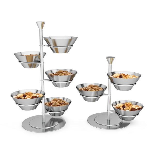 The Rotating Snack Stand Round by Kapp is an elegant and functional serving accessory designed for food presentation. This versatile stand includes cones for easy serving and features two height options, making it perfect for various occasions. Ideal for catering, buffets, or restaurant settings, it enhances the visual appeal of snacks and appetizers.