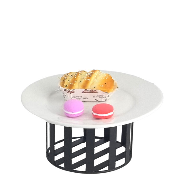The Round Metal Riser is a versatile serving accessory designed to elevate your culinary presentations. With a sleek black finish and sturdy construction, it provides an elegant way to display dishes, appetizers, or desserts at your restaurant or event. Its compact size makes it a practical addition to any table setting.