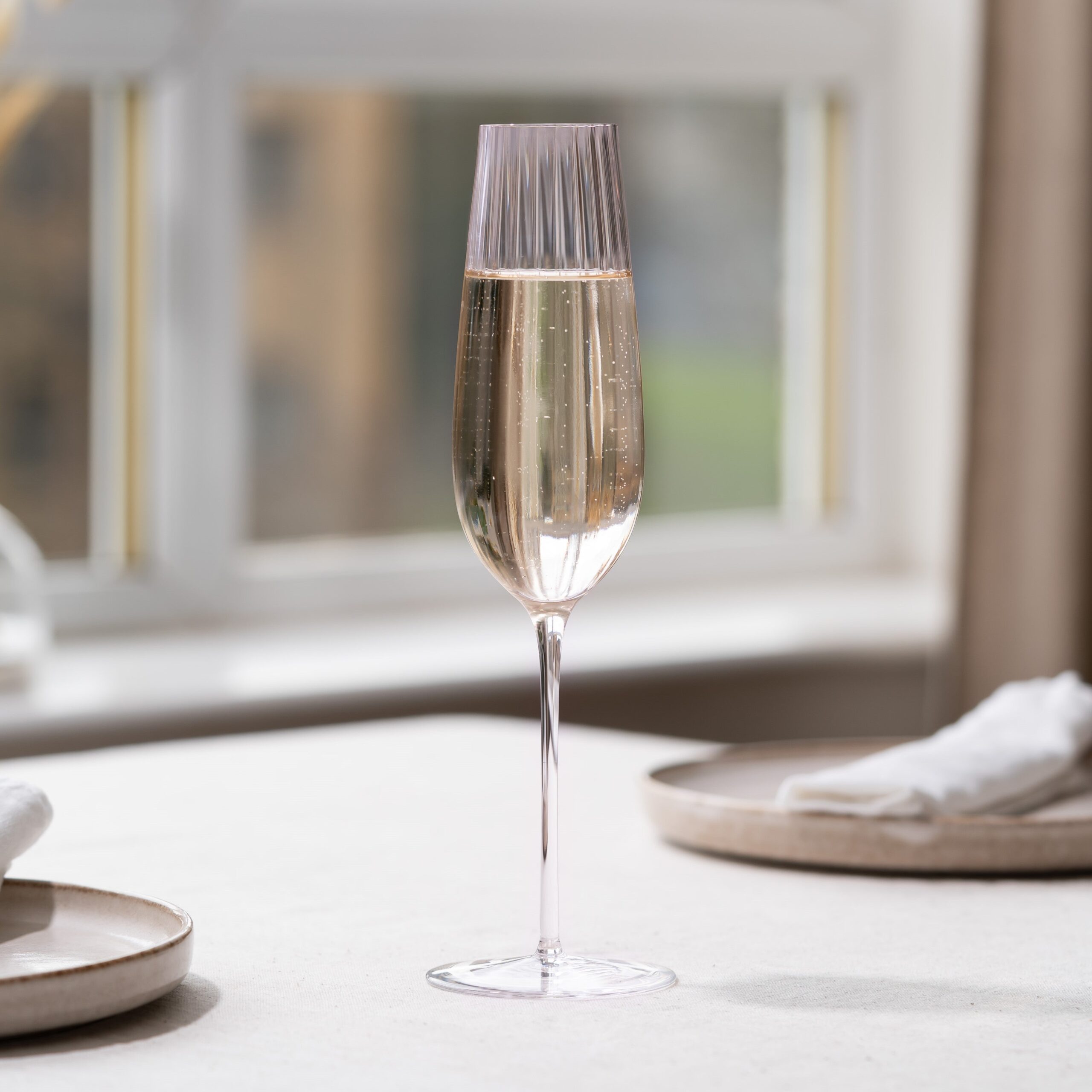 The Round Up Dusty Rose Sparkling Wine Glass Set of Two is crafted from lead-free crystal, offering both elegance and safety. With a height of 253 mm and a capacity of 200 cc, these glasses are perfect for serving your favorite beverages in style. The unique dusty rose color adds a touch of sophistication to any table setting, making them ideal for both casual and formal occasions.