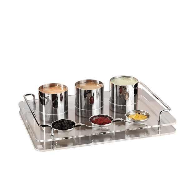 Elevate your sauce presentations with the WMF Sauce Presentation Set. This stylish and practical set includes a durable Plexiglass tray and three sauce containers, all featuring high-quality 304 stainless steel handles. Available in elegant color options including Copper, Gold, and Rainbow, this set is perfect for enhancing your dining experience.