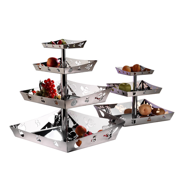 The Shelf Fruit Rack is a versatile display stand crafted from durable Acacia wood, designed to showcase a variety of items including fruits, pastries, and desserts. Its classic multi-layered design ensures ample space for presentations, while the Nostalgia option features a serrated surface that resists scratches and fingerprints. Enhance your displays with color options available through the Titanium PVD Coating machine, offering finishes in gold, copper, and rainbow hues.