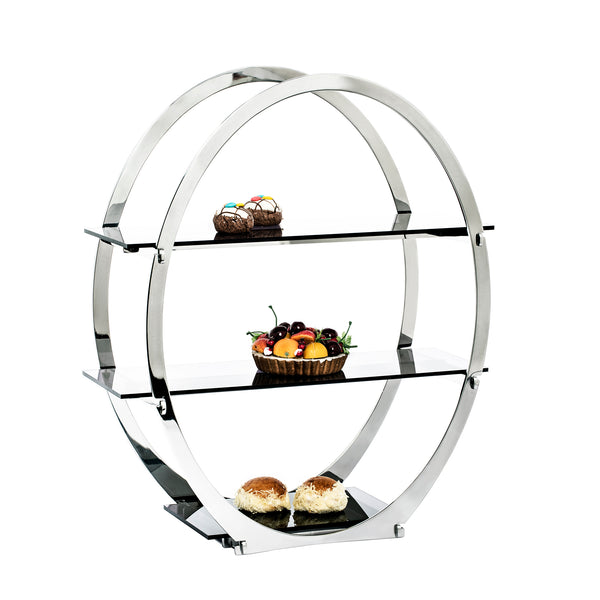 The Shelf Riser Oval 3-storey is an elegant addition to any buffet setup, designed to showcase a variety of products with its stylish glass floors. Its robust construction and sophisticated finish make it a must-have for open buffets, ensuring both functionality and aesthetic appeal. Available in multiple color options including Copper, Gold, and Rainbow, this riser is perfect for enhancing your dining presentation.