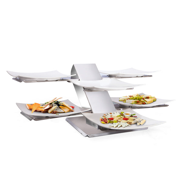 The Shelf Sea 3 Floor 6 Slot Tray in Satin finish is designed for elegant buffet presentations. Crafted from high-quality 304 stainless steel and available in stunning Titanium PVD Coating options including copper, gold, and rainbow, this tray combines functionality with aesthetic appeal. Please note that melamine trays are sold separately.