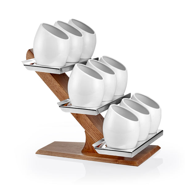 The Shelf Sea 3 Floor 9 Slot Wooden presentation stand is designed for showcasing a variety of food items such as cheese, salami, pastries, yogurt, jams, and olives in open buffets. Constructed with a sturdy wooden body and stainless steel shelves, this stand offers a stylish and functional solution for food display. The optional Titanium PVD Coating provides durability and aesthetic versatility with gold, copper, and rainbow color options available.