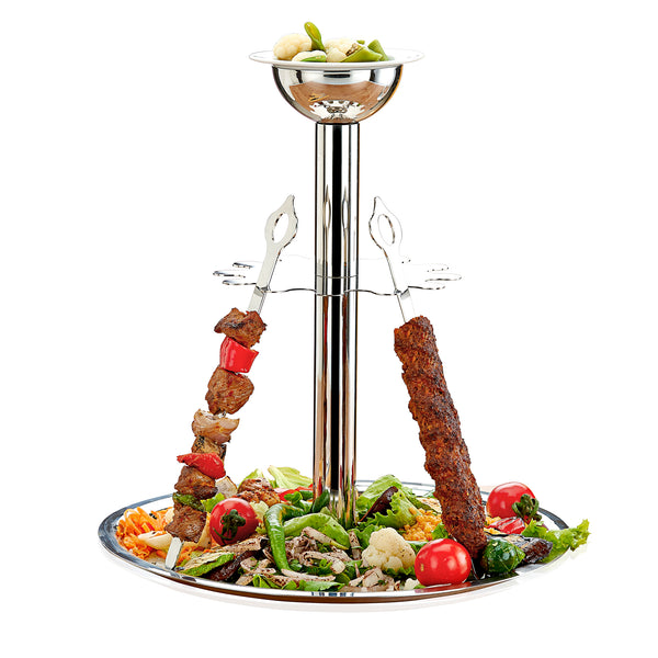 The Shish Stand Kebab Small is an elegant serving accessory designed to enhance the presentation of kebabs in restaurants and hotels. With its durable stainless steel construction and stunning Titanium PVD Coating available in copper, gold, and rainbow finishes, this stand not only showcases your culinary creations but also adds a touch of sophistication to your dining experience. Perfect for creating a captivating kebab display, it is an essential tool for any establishment looking to impress guests with both flavor and presentation.