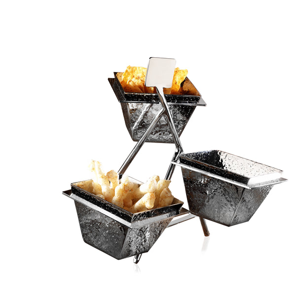 The Snack Stand 3 Slots is an elegant and functional serving accessory designed for displaying snacks in a stylish manner. Ideal for restaurants and cafes, this stand includes cones for easy serving and enhances the presentation of your offerings. Its compact design makes it perfect for any tabletop setting.