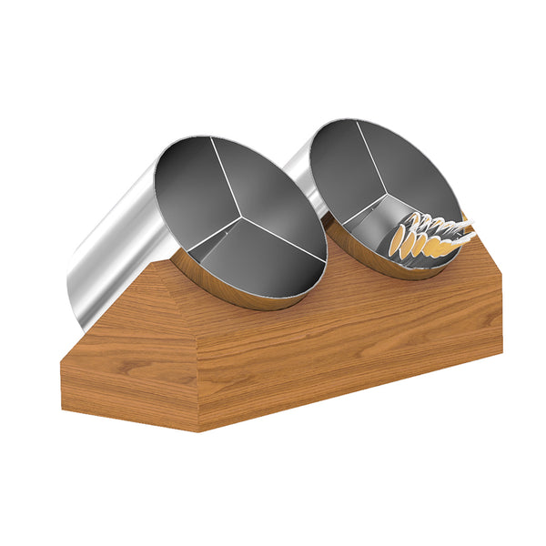 The Spoon Stand Sea Wood Horizontal with 2 slots is designed to bring the warmth of wood to your buffet presentations. Its slotted design accommodates various spoon sizes, while the Titanium PVD coating offers durability and a choice of elegant color finishes including copper, gold, and rainbow. Perfect for enhancing your serving experience with style and functionality.