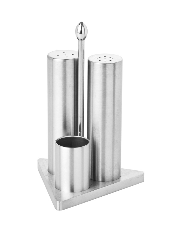 The Star Set - Triple is a stylish and functional salt and pepper shaker set crafted from high-quality 18/10 Cr-Ni stainless steel. Its corrosion-resistant design ensures durability, while the sleek matte finish adds a modern touch to any dining table. This set is dishwasher safe and comes with a 25-year warranty against manufacturing defects, making it a reliable choice for both home and professional use.