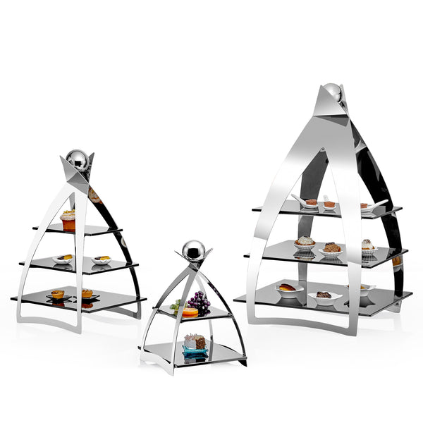 The Tent Stand 3 Tiers Mini is designed to elegantly display special treats for your guests. With a modern aesthetic and available in various colors including copper, gold, and rainbow, this stand is perfect for enhancing your buffet or dessert table. The durable Titanium PVD Coating ensures longevity and a sophisticated look.