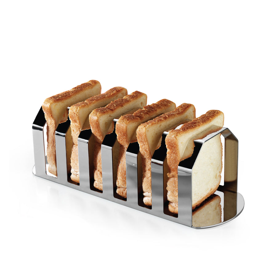 The Toast Shelf is an elegant serving accessory designed to hold your toast neatly, making it perfect for breakfast or snacks. With a stylish Titanium PVD coating available in copper, gold, and rainbow finishes, this shelf not only serves a functional purpose but also adds a touch of sophistication to your dining experience.