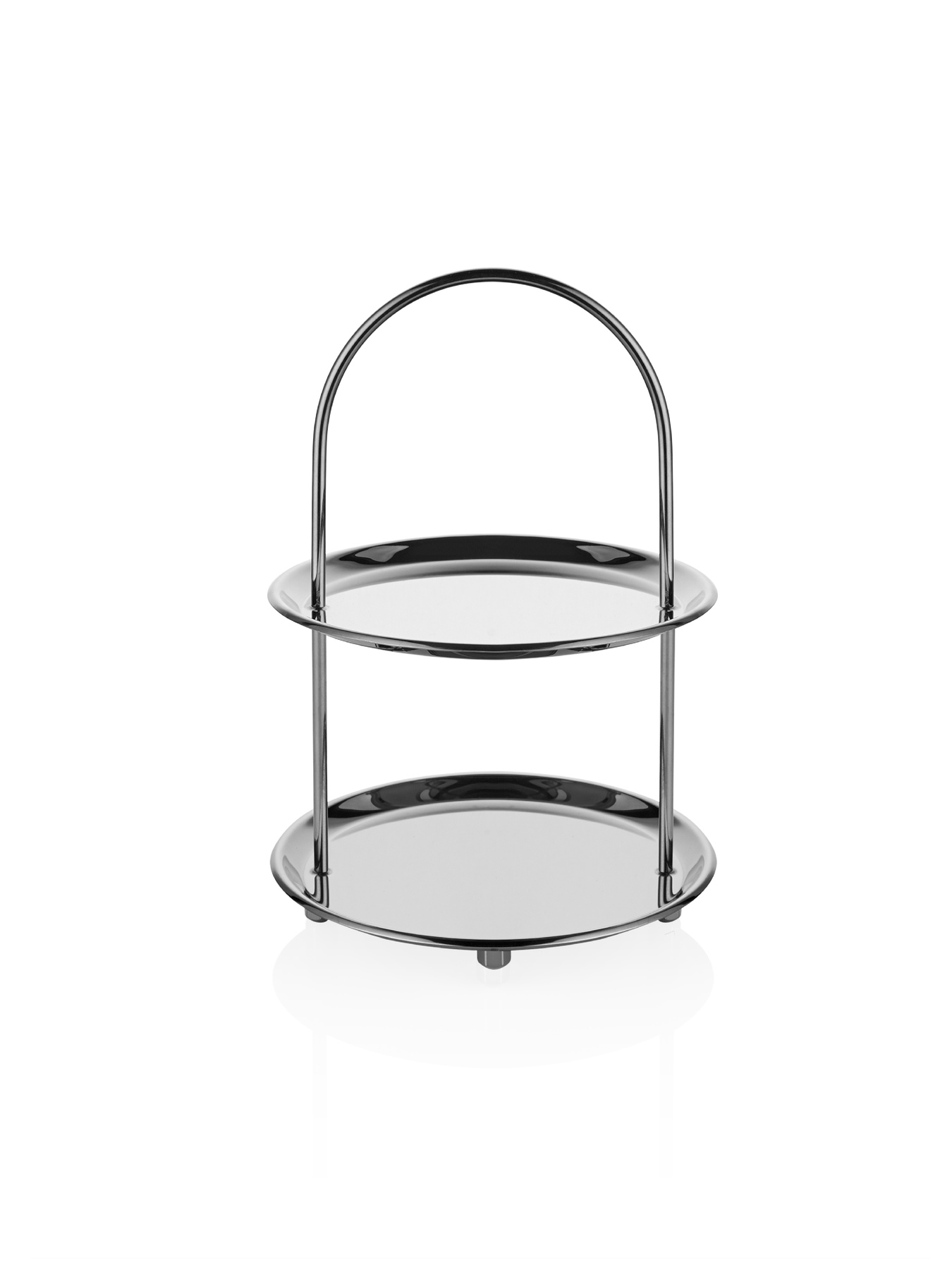 The Treats - Two Tiers serving tray is crafted from high-quality 18/10 stainless steel, ensuring durability and resistance to corrosion. Its elegant two-tier design is perfect for showcasing a variety of treats, making it an ideal addition to any hospitality setting. This tray is dishwasher safe and comes with a 25-year warranty against manufacturing defects.