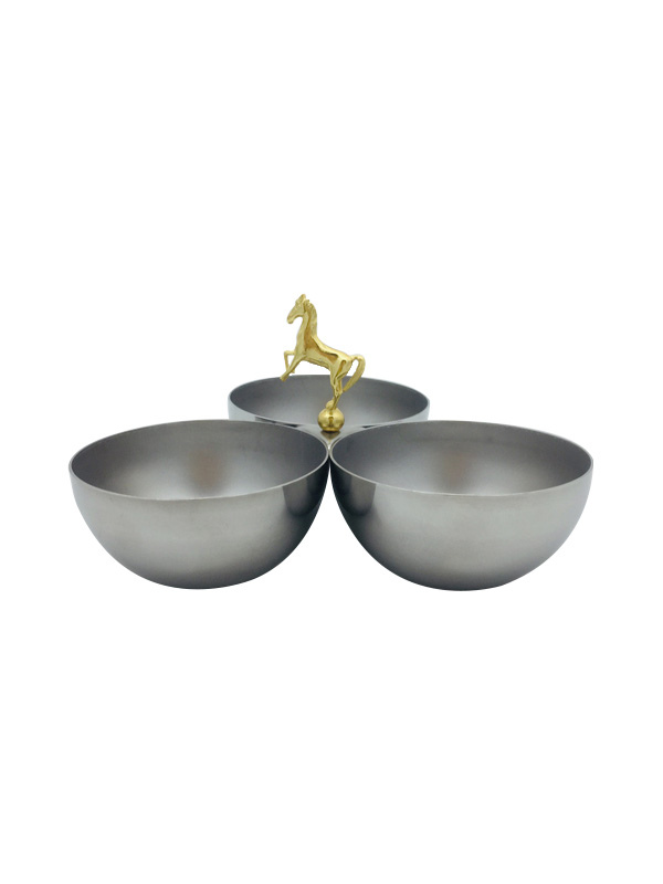 The Triple Snack Bowl - Horse Figured is an elegant addition to your serving collection, perfect for showcasing decorative treats. Crafted from high-quality 18/10 Cr-Ni stainless steel, it offers exceptional resistance to corrosion and durability. Ideal for both casual and formal settings, this bowl enhances your presentations with its unique design.