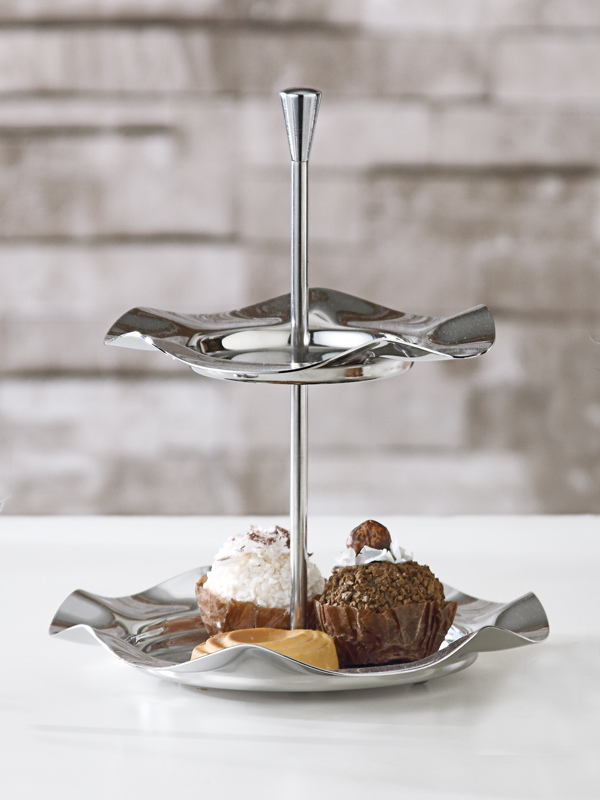 The Wave Catering Stand is crafted from high-quality 18/10 Cr-Ni stainless steel, ensuring durability and resistance to corrosion. Its elegant design makes it an ideal choice for presenting dishes in a stylish manner. This stand is dishwasher safe and comes with a 25-year warranty against manufacturing defects, making it a reliable addition to any catering setup.
