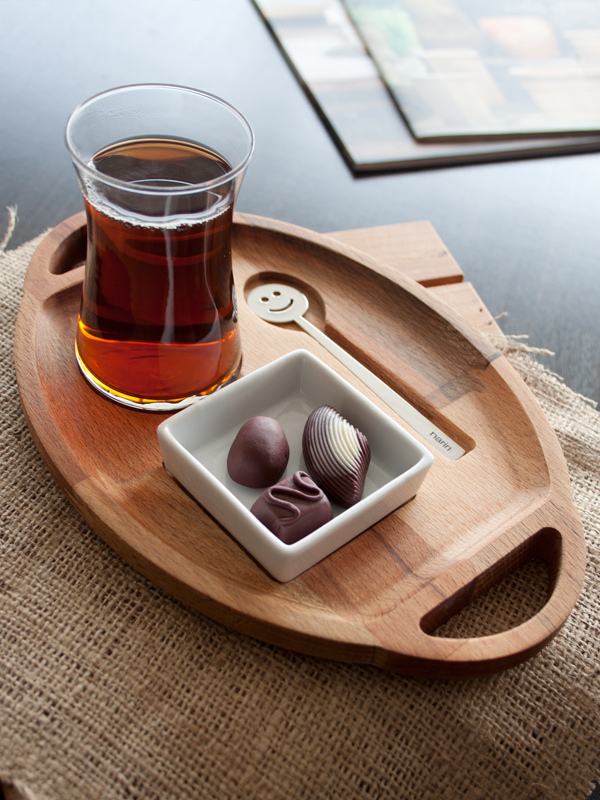 This Wooden Tea Serving Tray is a perfect addition to any tea service. It includes a tea glass, a porcelain treat, and a smiley tea spoon, all elegantly presented on a sturdy wooden tray. Crafted from high-quality materials, this set is designed for durability and ease of use, making it an ideal choice for cafes and restaurants.